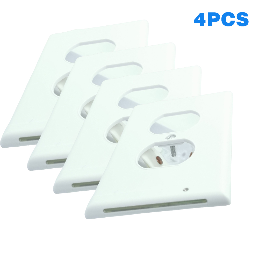 Set of 4 Duplex Style Wall Outlet Plate LED Night Light Illuminated Plug Cover With Sensor Inductive Light Easy Snap On No Wire Or Battery Needed