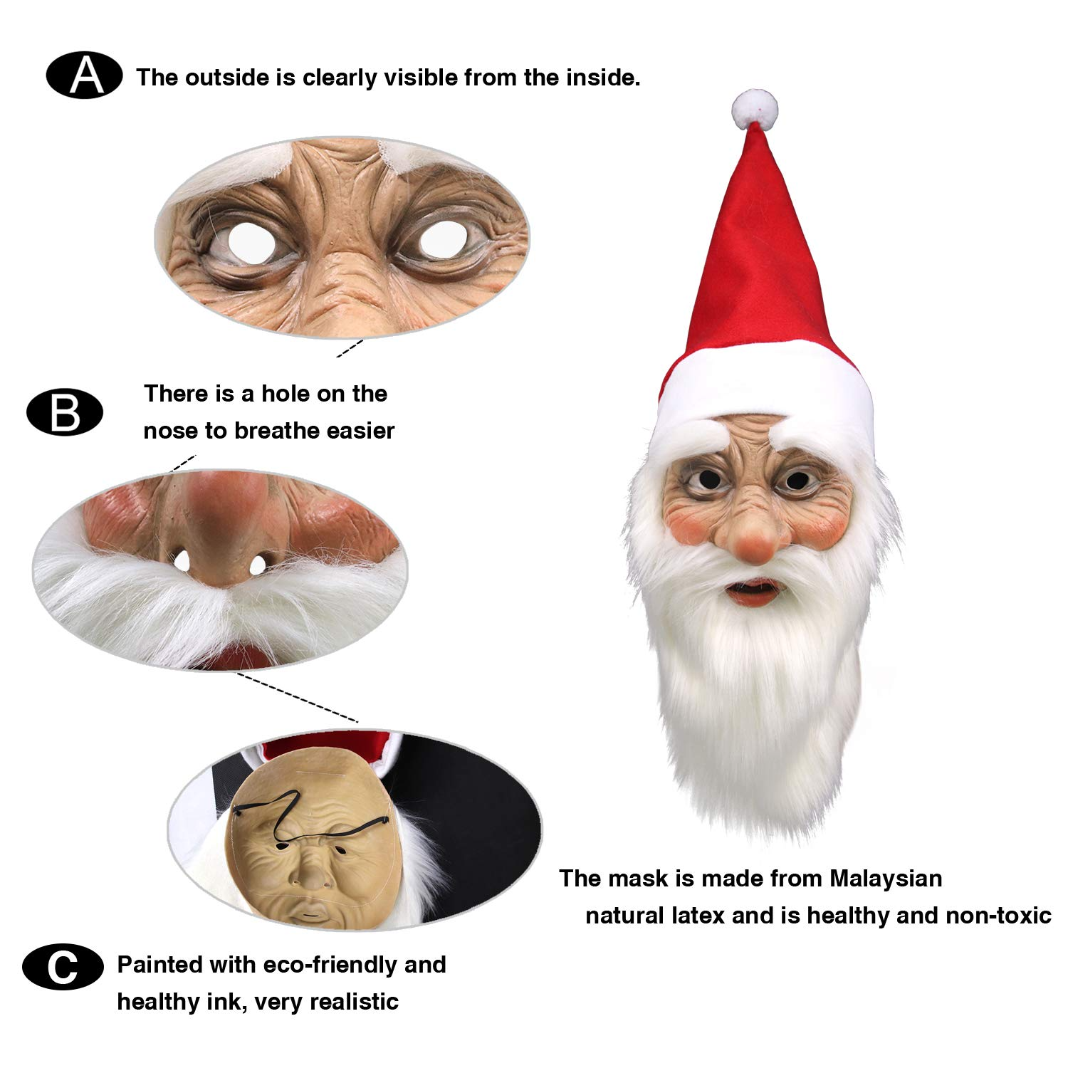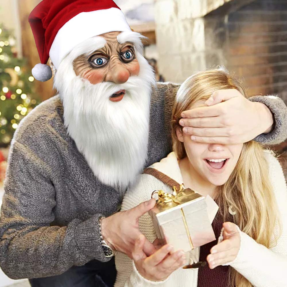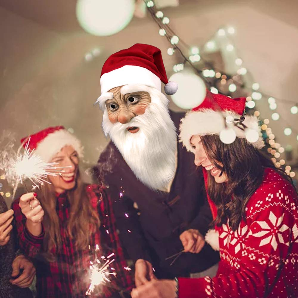 Santa Claus Latex Mask Realistic Full Face Latex Mask with White Beard, Red Cap Fancy Costume Masquerade for Halloween Christmas Party