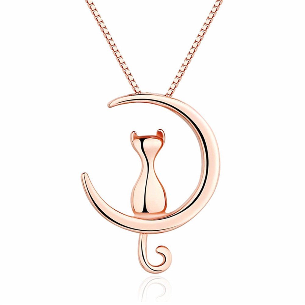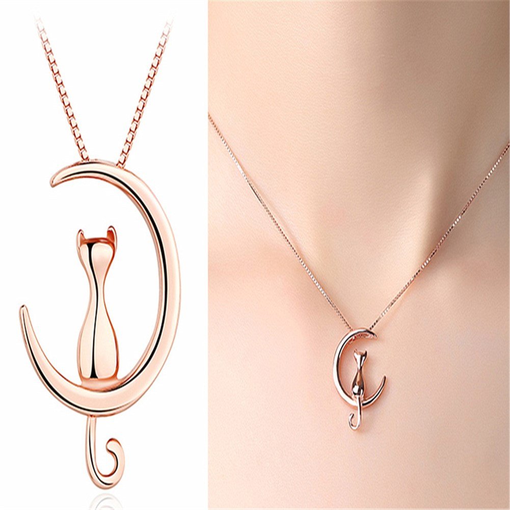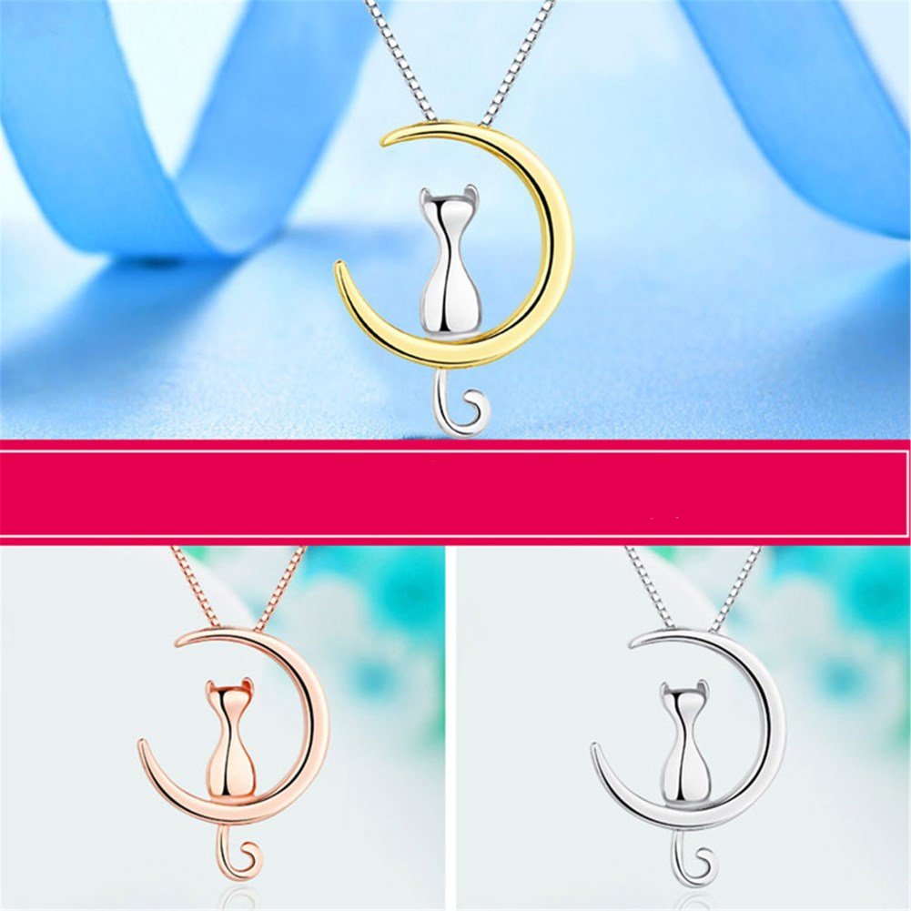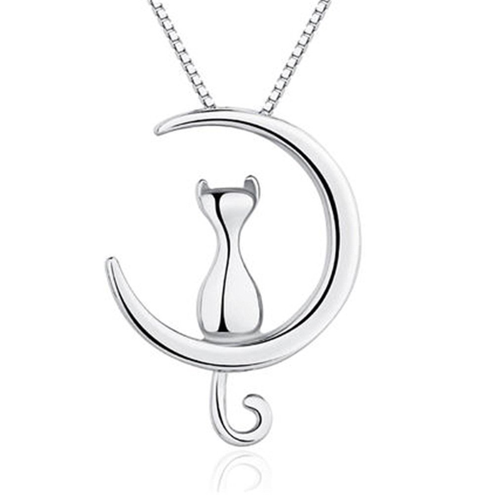 Creative Silver Necklace Moon Cat Pendant Female Collarbone Chain Lovely Cat Pendant(Not included chain)