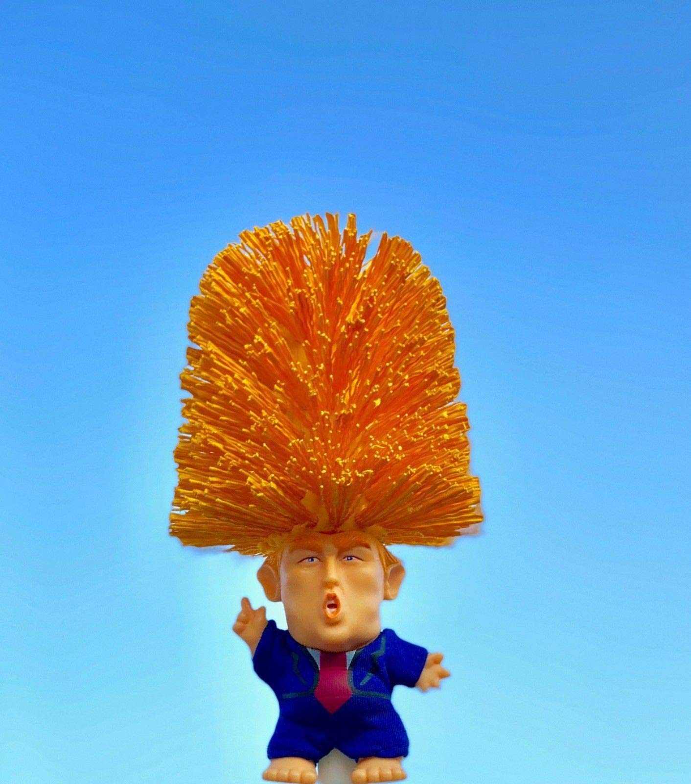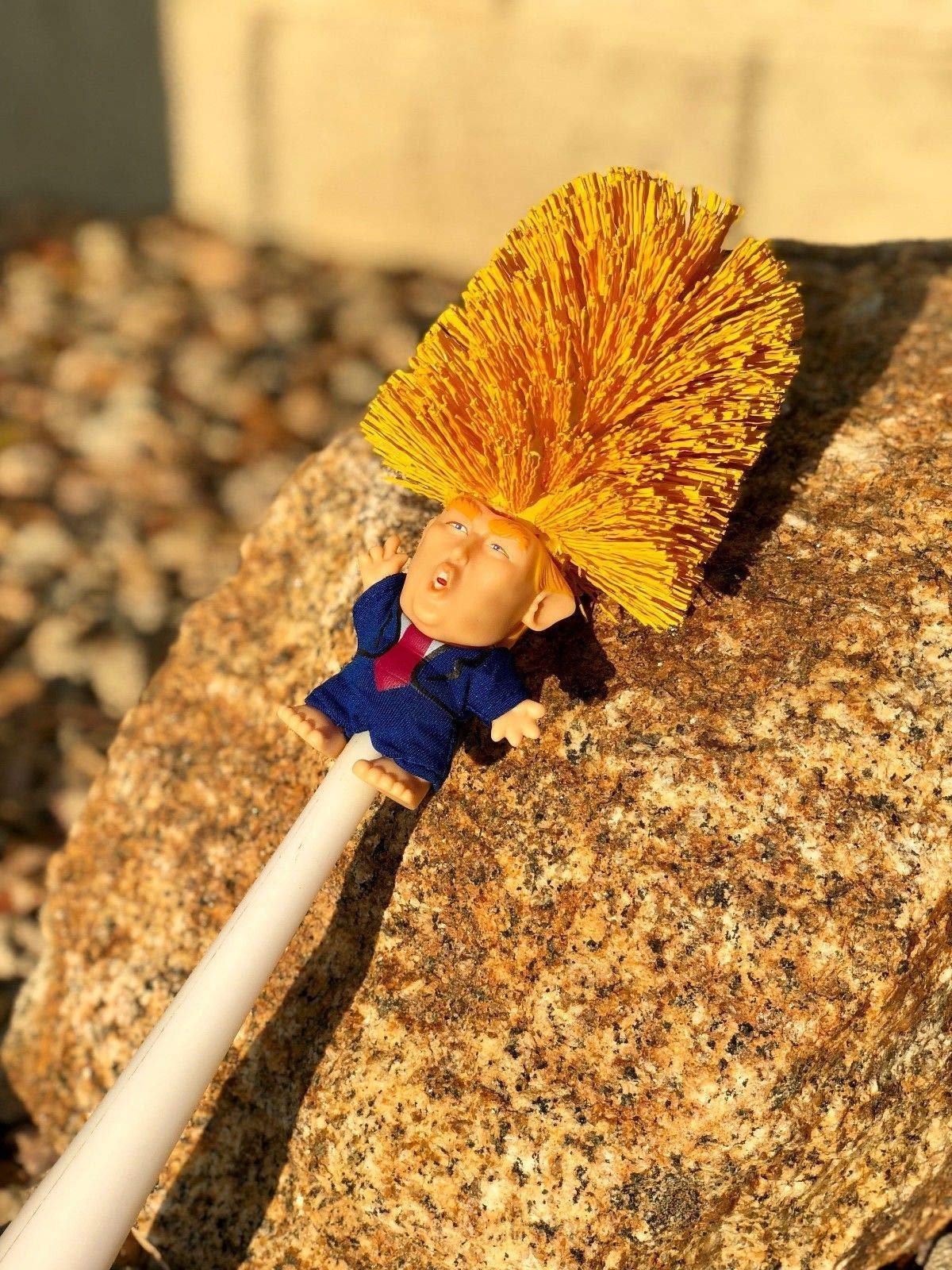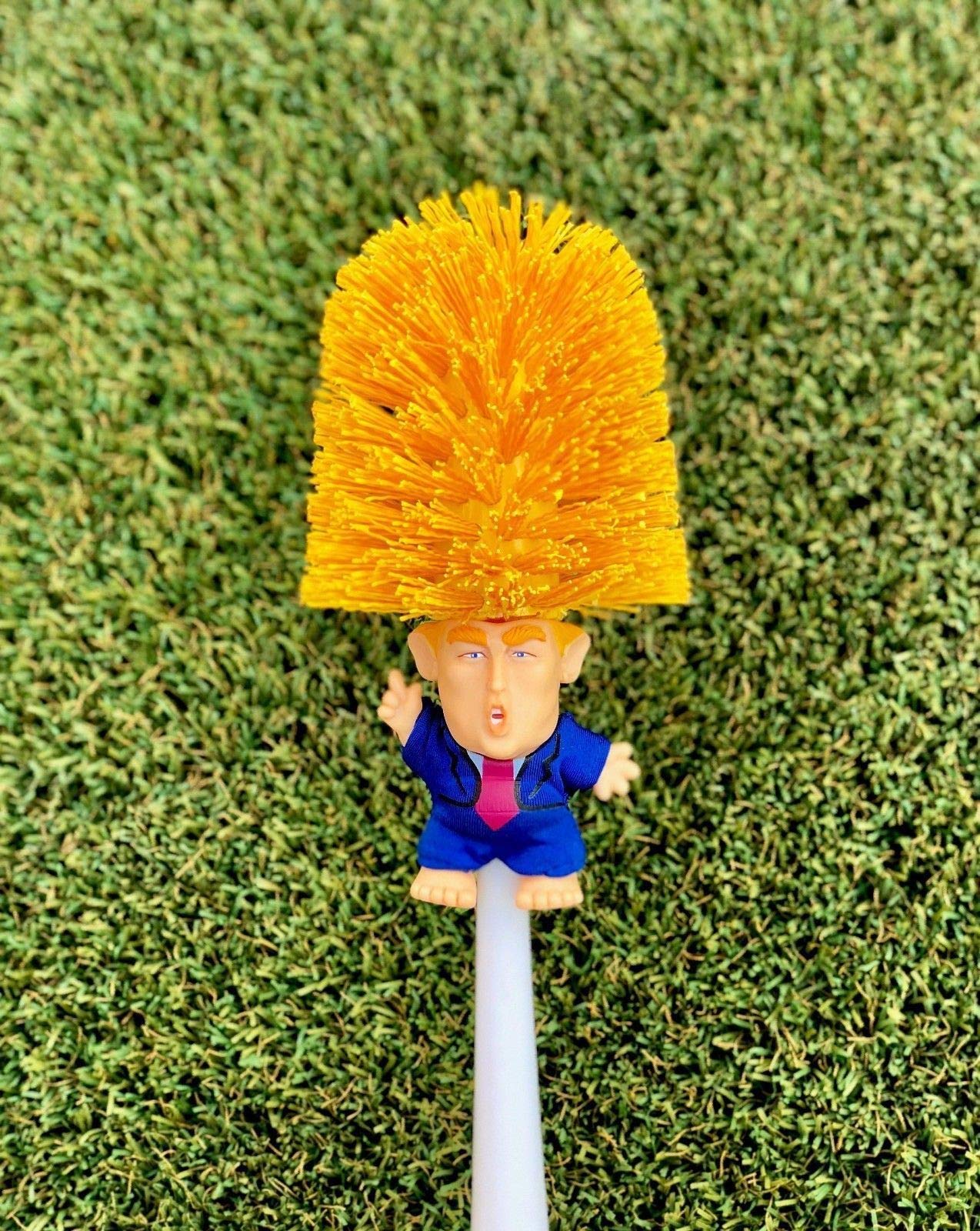 Make your toilet bowl great again by keeping it spick and span with this Trump toilet brush. Forty-five won’t disappoint as he puts his glorious golden faux-locks to work to drain that porcelain swamp.