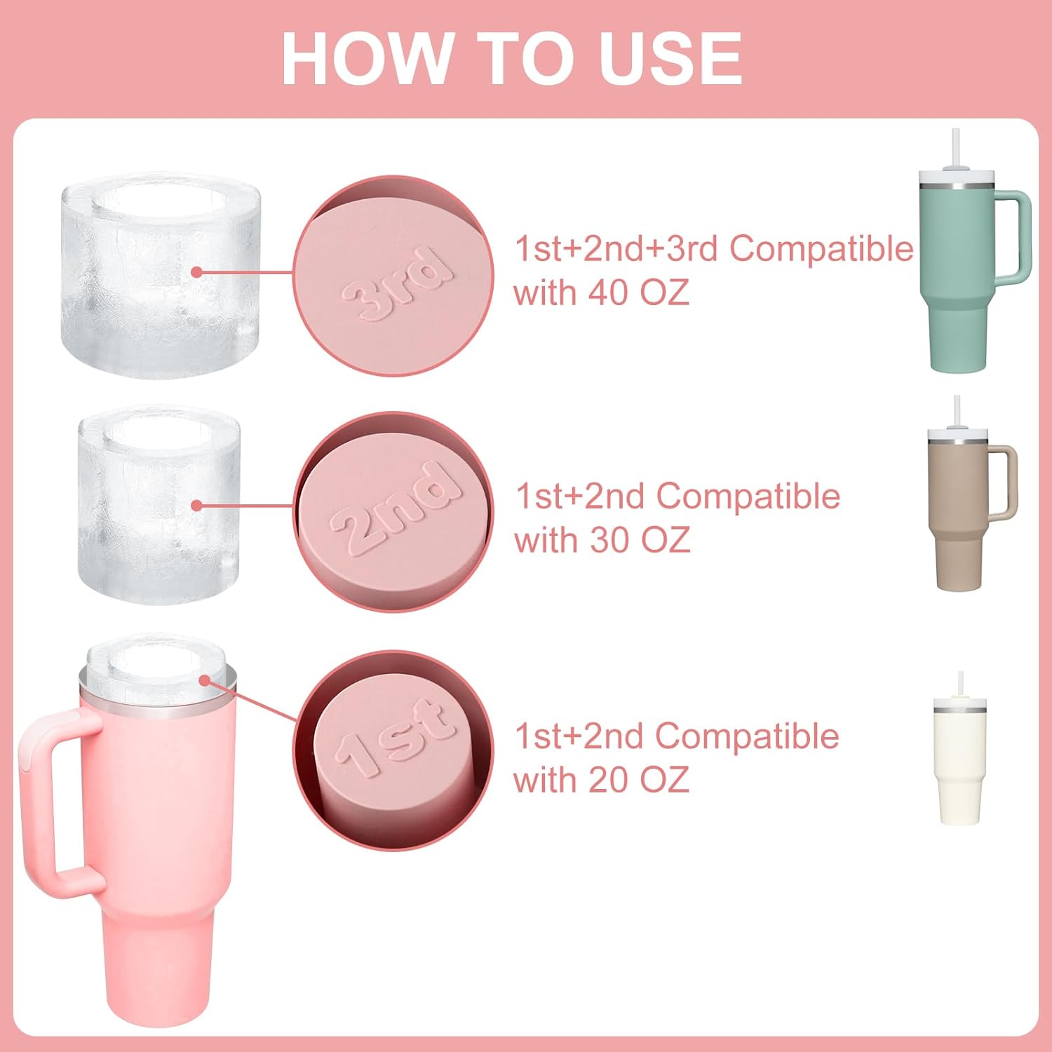 Introducing our team's latest innovation for this year - a specially designed ice cube mold that perfectly compatible with 30OZ and 40OZ tumbler cup. This mold creates three large ice cubes, ensuring your drinks stay cold for longer periods. The slow-melting feature of these oversized ice cubes ensures your beverage remains undiluted, preserving its original taste and quality. You can experience the perfect sip every time.