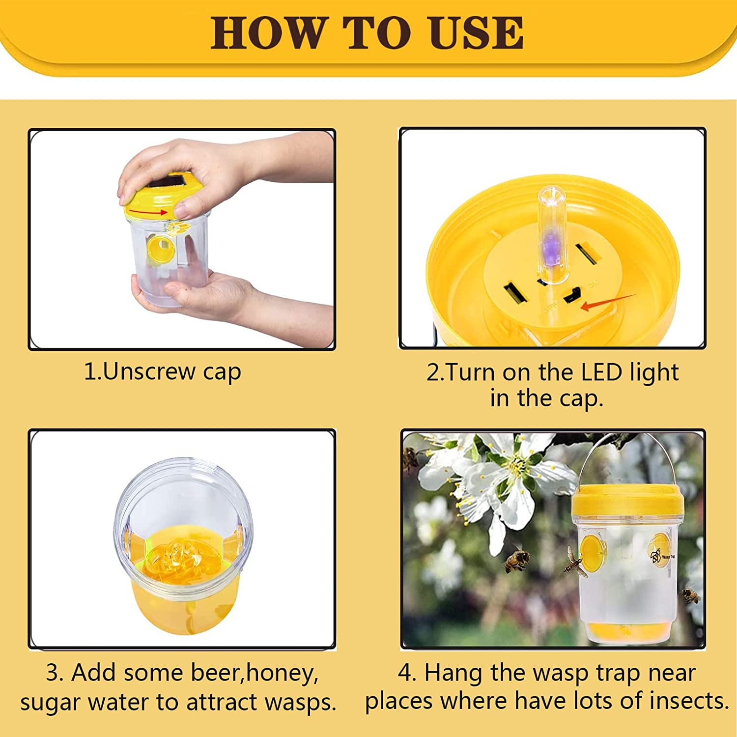 - Upgraded wasp traps: this hornet killler is completely upgraded. It has a unique and beautiful yellow shape. The bee trap for outiside has multi-entry design allowing more wasps to enter the trap. The entrance of the trap is large and the exit is small, and wasps entering the trap will not be able to escape.