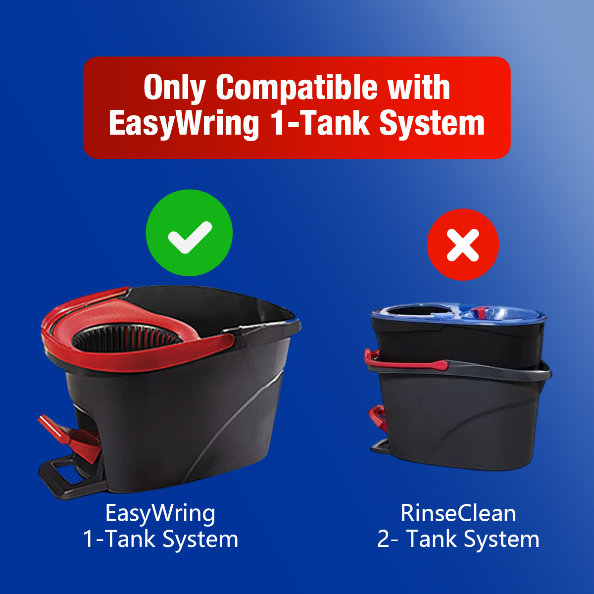 - Δ Exact fit for spin mop _ Compatible with Ocedar 1-Tank system. Not only for the triangle base but also the bucket. Installation as easy as original which is easily detach and snap on perfectly! NOTE: Incompatible with 2-Tanks Rinse Clean system.